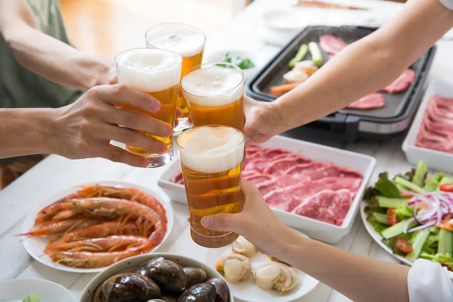 食生活を見直すことで顔のむくみを改善する方法です。塩分やアルコールの過剰摂取は顔にむくみを生じさせ、顔がパンパンに張ってしまう原因になります。特にお酒好きな人は、ついつい塩分の多いおつまみやチーズ、ハムなどに手を伸ばしがち。いつのまにか塩分過多になっていることも多いので、アルコールや塩分の摂取量には気を付けましょう。